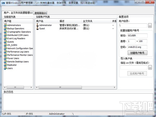 增强Windows用户管理器,可以批量添帐号,特别用在微软服务器操作系统(支持批量创建、删除账号、目录设置、加入与退出组)