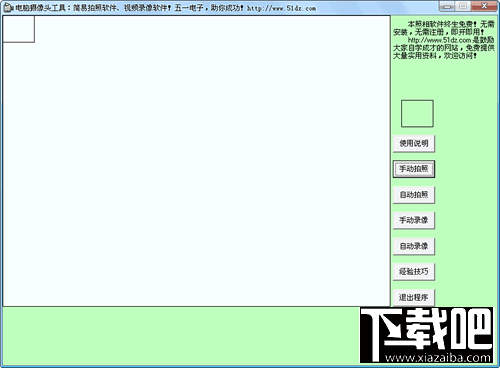 电脑摄像头工具是一款简易的拍照、视频录像软件,支持手动拍照、自动拍照、手动录像、自动录像。