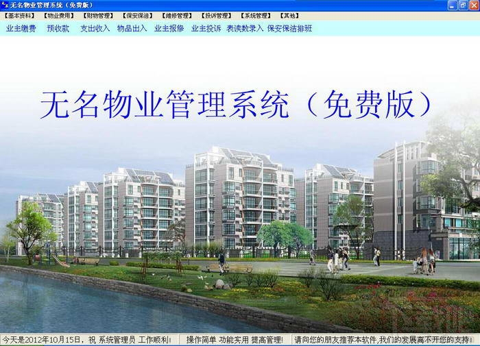 无名物业管理软件,实施及操作简单,功能实用,提高管理,永久免费(无使用站点、使用时间、单据数量限制)。适用于物业管理公司、出租房管理、出租商铺管理、写字楼管理、需进行物业管理的其他单位。