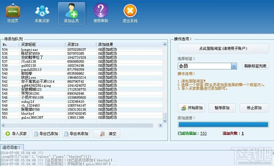 1)功能概述 本软件包括买家采集、自动会员吸纳(即打标)两大功能。 (2)软件优势 本软件无需任何小号,仅仅需要一个子账户即可,无需任何小号成本即可吸纳大量的会员。 (3)能做什么? 通过主动吸纳的方式把任意一个潜在的买家变成自己的会员,并通过卖家中心的 ‘会员关系管理’系统进行批量派发优惠券等系列营销活动进而达到促进成交的目的。 (4)派发优惠券的效果如何? 优惠券是淘宝站内唯一一个免费的流量入口,长期的实践证明其效果尤为不错。