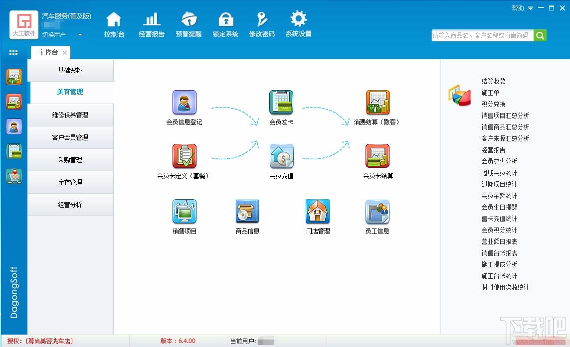 大工汽车服务管理系统是集维修、装饰美容管理为一体的汽车后服务管理系统。系统打破“流水帐”式的传统汽车服务管理软件的设计模式,重点解决商家的“集客”、“黏客”和“内部管理”三大难题。