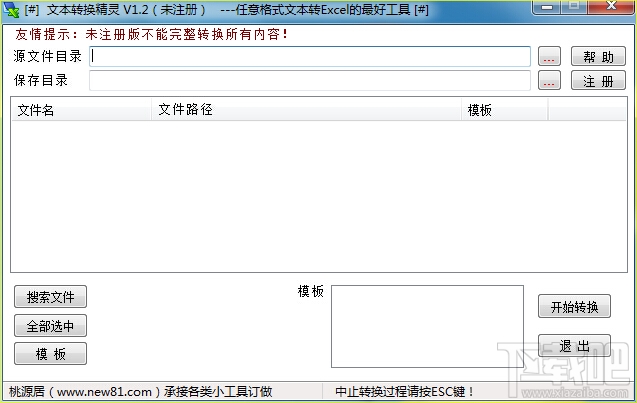 文本转换精灵专用于将各种格式的文本转换成Excel文件,她几乎可以转换任何复杂格式的文本文件。文本转换精灵采用自定义转换模板的方式完成文件的批量转换,无论多么复杂的文本文件,只要能成功定义模板文件,就能顺利转换成规范的Excel文件。只要给所有待转换的文本指定模板文件就可以快速批量转换不同格式的文本;格式类似的文本文件可以共用一个模板文件同时进行转换。