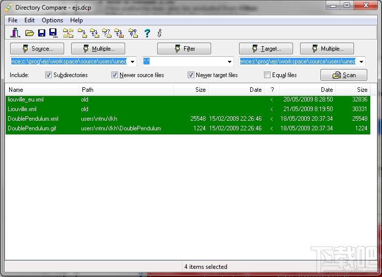 此工具用于比较两个目录的内容;以各种方式选定文件;删除或者重命名文件;用它们相关联的程序打开文件;同步目录的内容;获取选定目录内的文件信息;打印目录列表或者导出到逗号分隔的文件。 Directory Compare可以比较文件夹,并同步你想要的文件。文件和应用程序可以备份在硬盘或任何其它存储设备上。你可以使用Directory Compare自动创建备份,保存你所有的重要数据。 当您将文件储存在不同文件夹或者是储存的周边装置中,您很可能不知要从何将这些文件备份起,特别是文件过多时您根本就无法一个个自己动手以及动”眼”去做比较的工作,但是有了Directory Compare之后,您可以将这个苦差事全部交给它去搞定。