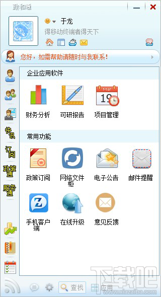 政和通即时通讯软件是政和网为政和网企业、政府、服务机构等会员度身定做的免费网上商务沟通软件,可以帮助会员及时把握政策信息,轻松找客户,发布、管理商业和服务信息。不登录网站,快速、即时获取政策、科技等新信息!一次性批量发布有针对性的服务、商业、科技信息。商机,一触即发!即时在线商务洽谈,空间不再是阻隔,轻松做生意!