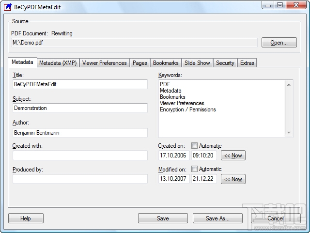 PDF信息修改(BeCyPDFMetaEdit)编辑PDF的meta信息,meta也就是PDF的文件概述和摘要,还可以为PDF文件打水印,编辑页面目录等。