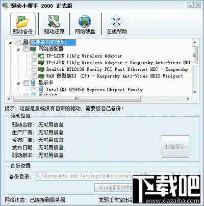 驱动小帮手是为装机时备份驱动所量身定做的工具实现对硬件驱动的快速备份,还原利用较好的算法,最少的损耗,达到最优的性能。绿色软件,完全免费,没有任何功能限制操作简单,一键即可备份还原独有网络硬盘驱动备份,不但节省硬盘空间,而且防止感染驱动病毒正式版修正了多网卡可能无法正常备份还原的bug