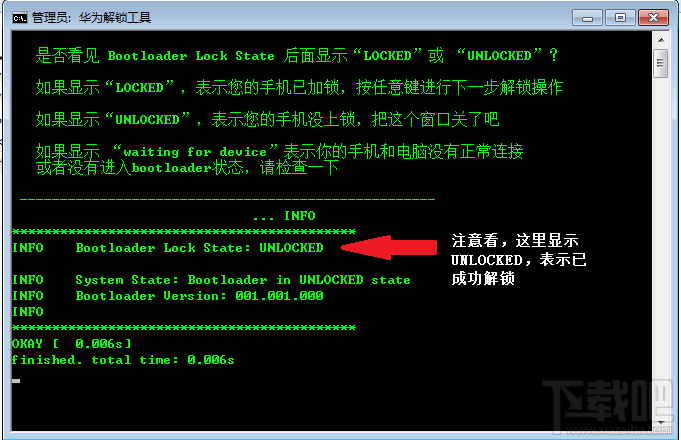 因为华为C8825D的bootloader默认是上锁的,防止机友刷机,或者获取root权限,必须先解锁后,才能进入刷入recovery进行刷机或者root,所以这款工具就可以起到这个作用了。