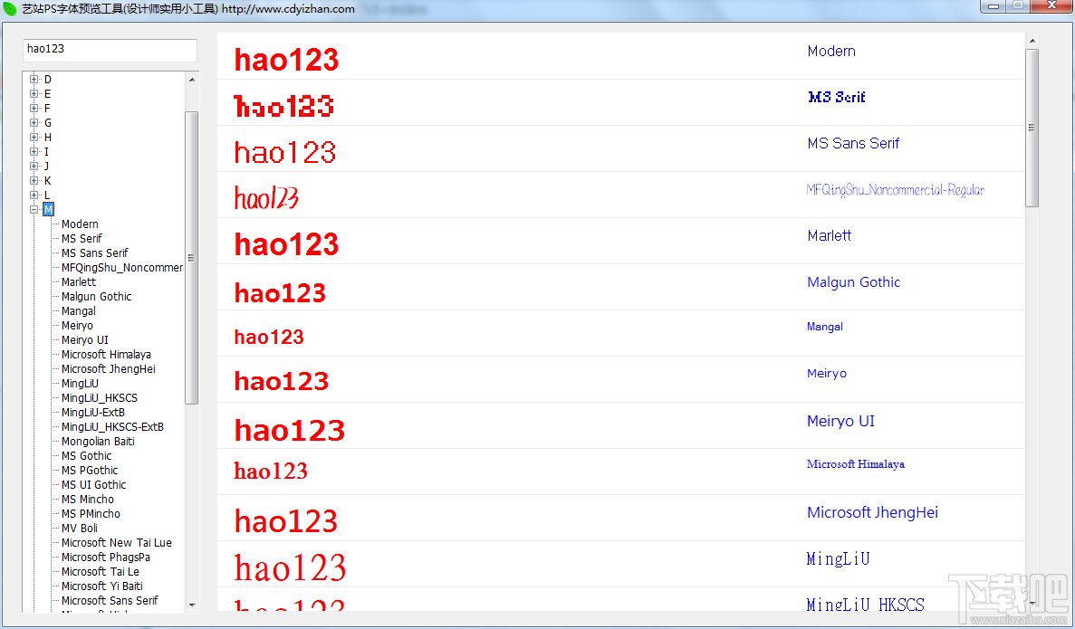 艺站ps字体预览工具绿色无需安装,打开即可预览电脑中已安装的各类字体。对于设计师和常用PS等设计类软件的朋友来说,是个很不错的小工具。可任意修改预览参考的文字。
