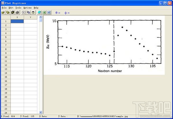 plot digitizer是一款很棒的图形数字化软件。可以将曲线图转化为数据与等式。当用仪表做出曲线图后,用扫描仪扫入计算机,存成JPEG格式,便能用此软件处理了。首先确定X轴与Y轴及刻度,再在曲线上确定数个点,便能得到点的横竖坐标并能拟合出X、Y公式