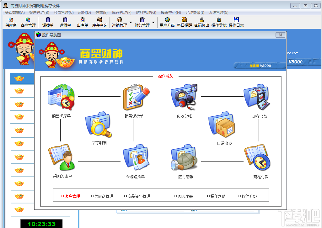 商贸财神服装鞋帽行业版管理软件是专门为服装、鞋帽、服饰零售及批发行业开发的管理软件,它功能强大、操作简便,融合了服装鞋帽的款号、颜色、尺码的特性,将前台收银、后台管理、远程控制完美结合,具有完备的单机操作、网络管理及连锁管理优势。
