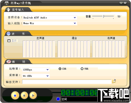 嘉音高清MP3录音机是一款功能强大的MP3录音编码软件。支持32KHz、44.1KHz和48KHz采样率,实现从32Kbps到256Kbps比特率压缩编码,支持VBR/CBR编码,能够轻松实现从语音音质到高清数字音频音质的录音编码。支持PC和大部分主流中高档声卡,支持麦克、CD、线路、数码输入线路选择。波形分析器能够实时显示音频信号强