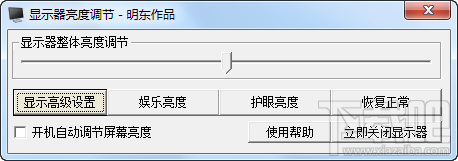 明东显示器亮度调节是一款简单易用的显示器亮度调节软件,其设置了三种显示器亮度模式,分贝时娱乐亮度、护眼亮度和正常亮度,除了这三种模式可以自由切换外,你还能手动调整屏幕亮度,并有立即关闭显示器功能。