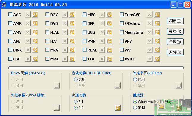 简单影音2010,媒体播放解码包,使系统自带的 Windows Media Player 增加以下功能及支持更多的文件格式: