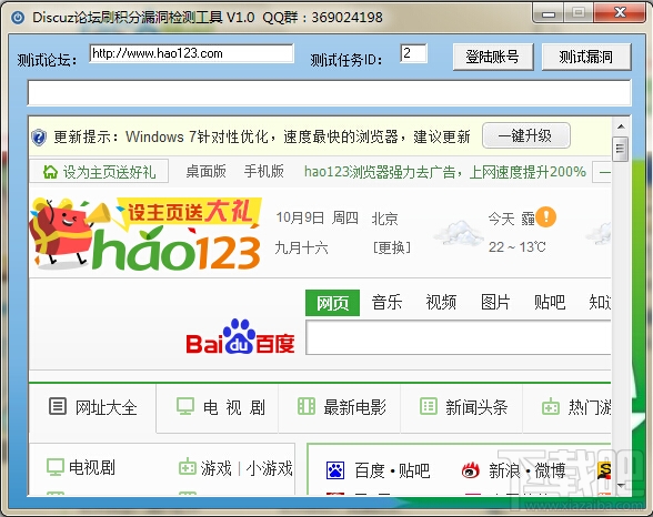 Discuz论坛刷积分漏洞检测工具软件只支持Discuz论坛,登陆账号—等待网页加载跳转完毕—点击测试漏洞(登陆账号后大概7秒)