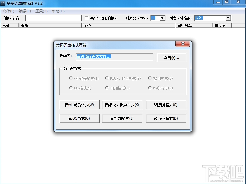 多多码表编辑器是轻量级文本格式转换工具,因为程序主要针对输入法码表格式而编写,故此工具与多多输入系统的结合更为紧密。与多多输入法生成器结合使用,从编码思想到一个优秀的输入法软件,十分简单:汉字拆分表多多格式的文本码表生成输入法安装程序〉使用中码表调整〉完善的文本码表-〉【多多码表编辑器软件功能】最终发布的输入法编辑器的主要功能如下:转换目前网络上常见的输入法码表为多多格式的码表 对文本文件进行格式化转换,转换使用轻量级转换表达式 词库生成,生成时依据构词规则、单字编码表和辅助编码表 依据键盘映射表和单字拆分序列生成单字编码表 依据词频表对已有编码表排序 码表重复词条一次删除 丰富的码表排序操作,可对码表进行分类信息提取,如提取单字编码、二字词等 丰富的码表统计信息,如重码率、码元占用率等 更为重要的,支持命令行参数调用。使得由excel拆分序列文件到输入法安装程序生成成为可能。