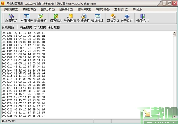 5.69 MB/2020-08-17《晴天双色球分析软件》是一款开放式的过滤条件设置及管理的彩票软件,在软件里用户可以任意的添加、修改、删除各种过滤条件!【晴天双色球分析软件主要功能介绍】1.历史开奖数据a.数据表模式在数据表模式里可以查看到往期开奖的号码及对应的各条件值,比如和值、AC值、重开号码个数等等;b.号码分布图模式分布图模式提供了直观的历史开奖号码分布情况,并且可以在分布图里直接选取号码;c.分析表模式通过分析表可以直观