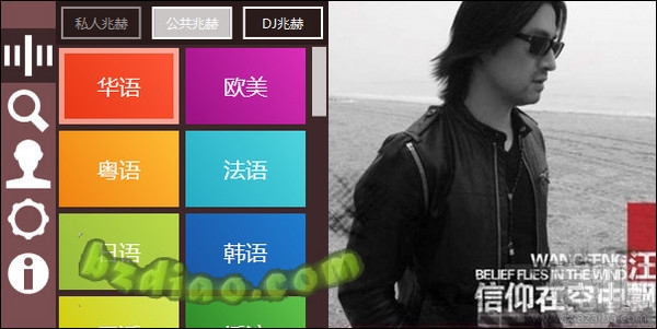 这个年代啊,都来win8风格啊!Win8豆瓣电台够清爽,够简单!还带有歌词!当你将鼠标放置在图片上时,会自动跳转到设置的界面,转换效果不错!