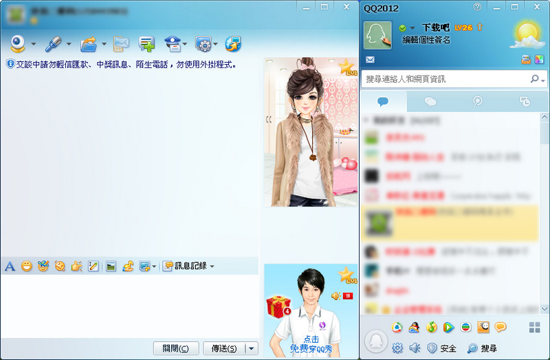 QQ2012繁体版是騰訊開發的一款基於Internet的即時通訊軟體。QQ2012在中國大陸已經擁有3億多使用者,同時線上人數已接近五千萬,是溝通娛樂的优秀平臺。騰訊QQ繁体版除具有一般即時通訊軟體的聊天、視訊音訊等功能外,還具有群、離線傳檔案、多人音訊、信箱、QQ遊戲、QQ空間等特色功能。使用QQ,您可以輕鬆、方便和高效地與朋友連絡。