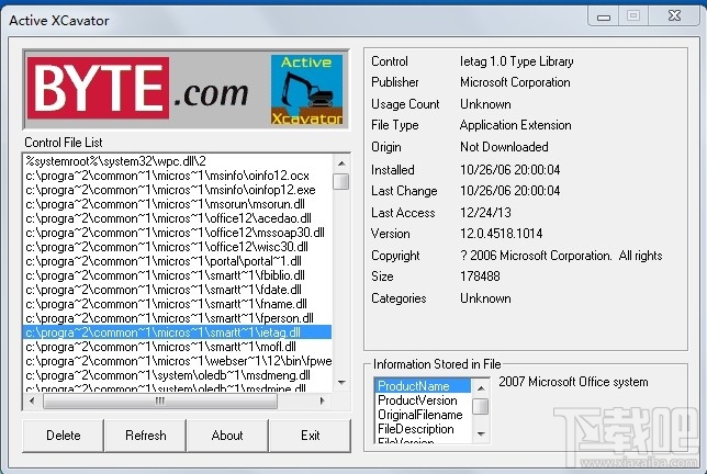 Internet Explorer可以自动的下载并安装ActiveX控制组件。但若不小心自动下载安装到有问题的ActiveX,那可是对于我们计算机安全造成莫大的危害。Active XCavator可以让你检视计算机上已安装的ActiveX控制组件,让你将有问题的ActiveX移除,以用来保护我们的计算机。