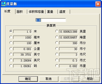 这是一个各种单位换算的程序---度量衡,它包含长度、面积、体积和容量、重量和温度的各种中外单位的相互转换。使用十分方便。愿大家喜欢。