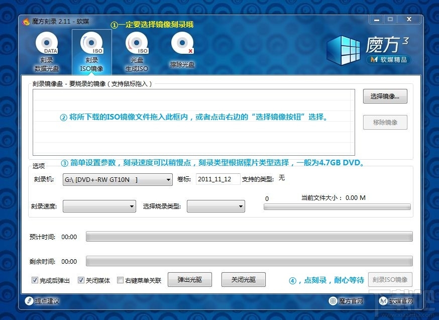 魔方刻录软件是从新版魔方电脑大师中提取出来的一个光盘刻录工具,支持数据和ISO镜像刻录,还能把光盘转换成ISO镜像,大小才200多K哦。 小编一直都是用DAEMON Tools 来刻盘,后来发现魔方电脑大师中也有光盘刻录功能,但是个人不喜欢那种常驻后台的软件行为,所以就提取了这个魔方刻录工具,软件胜在体积非常小巧。