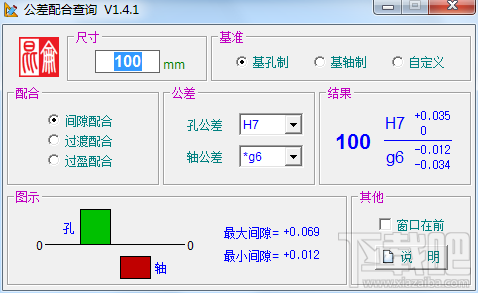 公差配合查询是免费、绿色、小巧、实用的工具软件。符合《GB/T 1800.3-1998》和《GB/T 1801-1999》中公差与配合的规定。