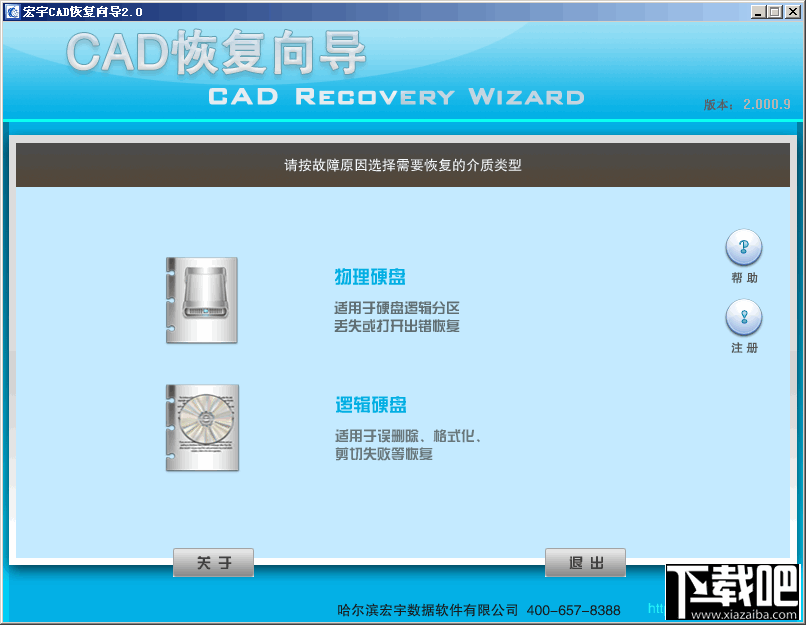 宏宇CAD文件恢复工具下载,用于恢复AUTOCAD文件的数据恢复工具,用于查找和恢复因误删除,格式化,病毒破坏等原因丢失的DWG工程绘图文件。