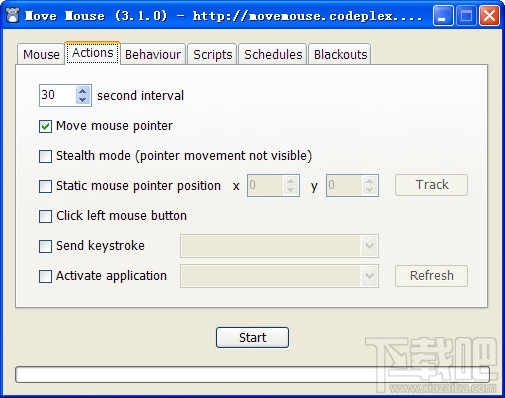 Move Mouse是一个能根据用户的各种动作设置来自动执行鼠标指针的移动的鼠标自动移动软件,小巧易用,虽是英文界面,但操作简单,一看就会。