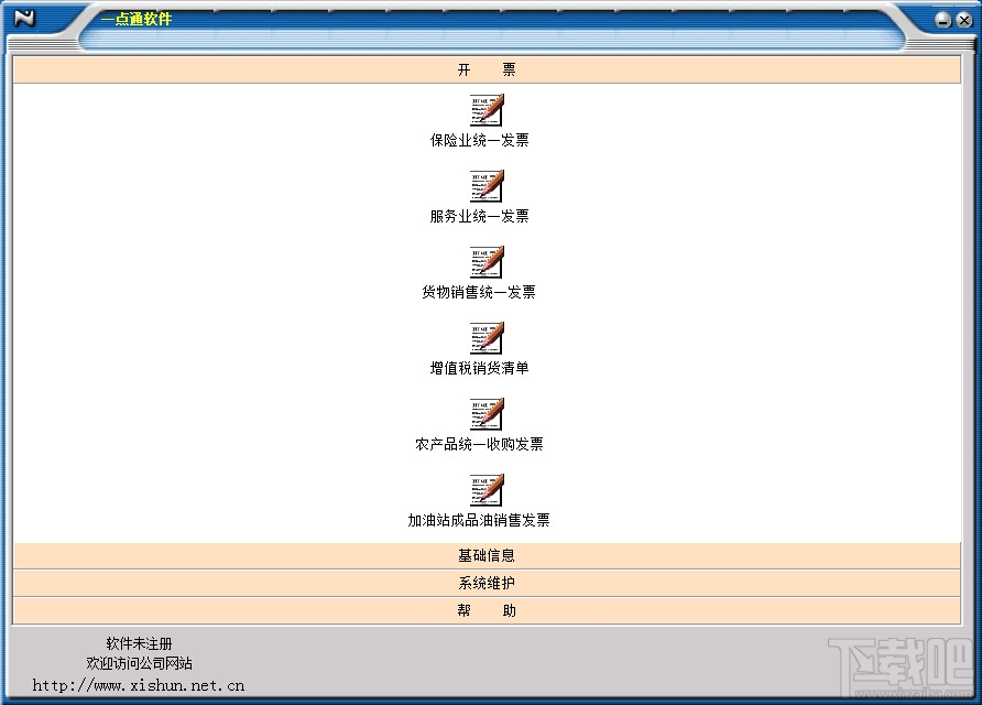 随着税务部门对发票开具越来越严格的管理,越来越多的发票开始要求非手工填写,熙顺科技针对这一要求开发的发票管理打印系统,就应运而生。通过该软件打印出来的发票,即符合了税务部门的要求,也极大的提高了开票单位的工作效率。 发票软件的功能介绍:该软件为一点通票据打印管理系统的姊妹产品,该软件使用的侧重点在于各式发票的打印和管理,可打印税务发票如销售发票、服务发票、保险业发票、送货单、发货单、各类收据及财政收费类单据等各类票据的打印输出功能。除具有发票打印功能之外,该系统还提供强大的数据记录查询及管理功能,结合EXCEL表格处理软件能够自动生成美观的发票使用明细表,您可清楚的看到每张发票的来去方向、使用情况,让您的工作轻松而严谨。类似QQ的新颖时尚外观,功能强大的发票打印。设有产品资料库,只要选择产品名称或编号,其相对应的型号、单价、计量单位等就调用出来 批量导入产品资料库和客户档案,免去资料重复录入;快速制作票据版面及格式,打印设置简单!另外还可以根据用户的需要定制。该软件无需专用打印机,只需一台普通针式打印机(税控机也可)就可完成发票的打印工作
