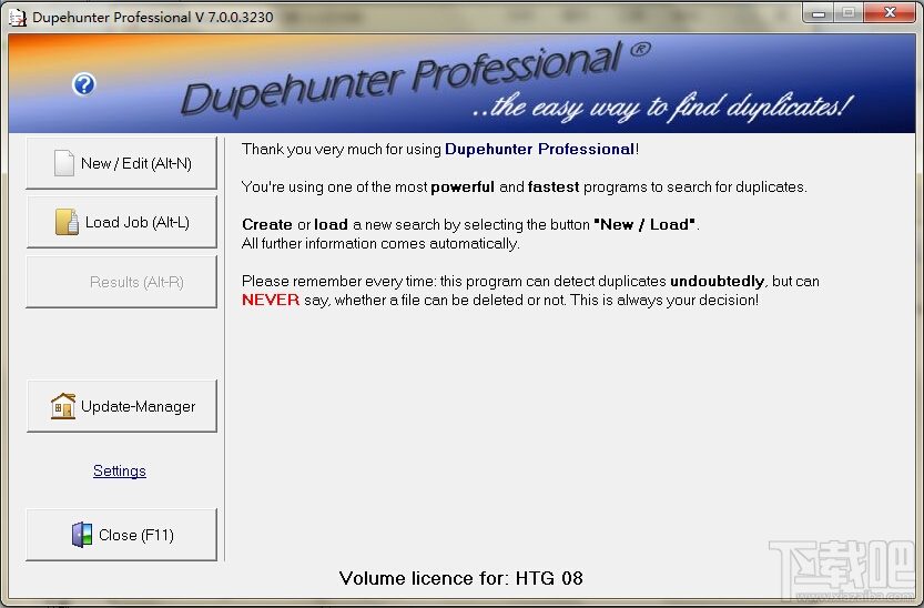 此软件能鉴别电脑上重复的文档、图片和程序等等,所有类型的文件均不受限制。根据文件的日期、时间、大小、属性和内容进行精确的定位和搜索。最终将之删除、洁净。