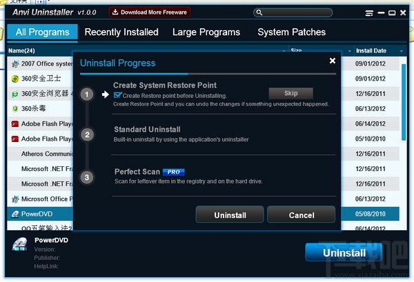 Anvi Uninstaller 是一个用户友好的卸载程序,允许您删除您计算机安装的任何应用程序。此外,还可以用该软件实用程序来卸载程序,所以在任何事情发生错误的情况下,您可以到以前的状态还原您的电脑之前,请创建一个还原点。 界面挺炫,可以卸载电脑上安装的任何软件和程序,包括WIN系统补丁也可用它来删除,软件会首选用程序自身的卸载程序来卸载,也可强制卸载并清理残留,在进行卸载操作前,该软件还能创建一个系统还原点,以便发生问题时,恢复系统