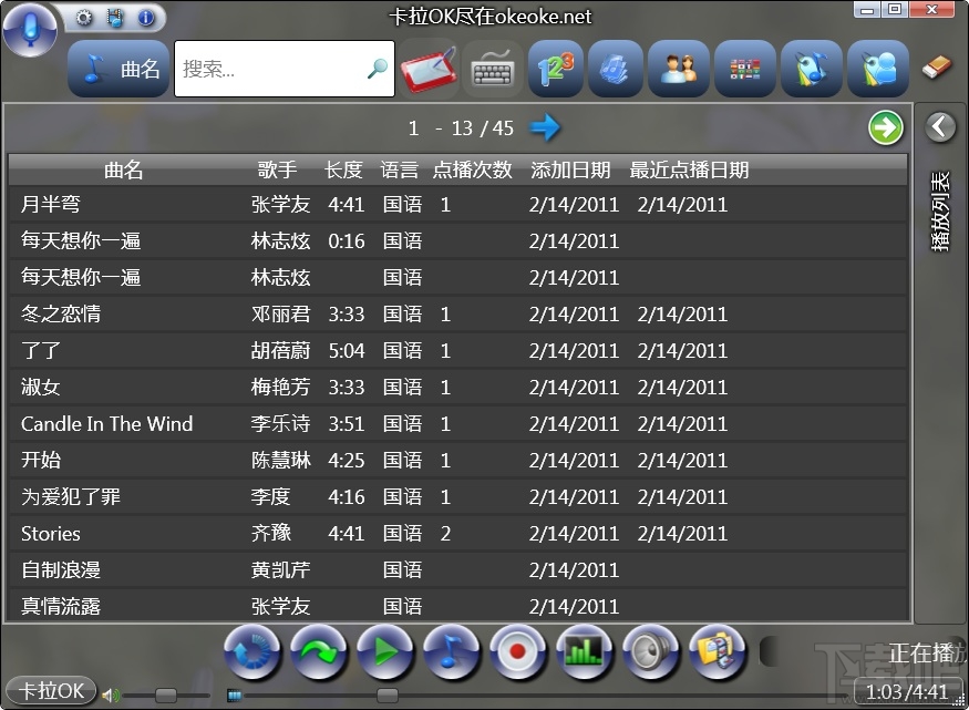 OkeOke.Net是一款卡拉OK及视频点播管理软件,基本功能包括: 搜索点歌,边唱边录,支持播放列表,给媒体文件加标签,方便搜索,播放几乎所有格式媒体文件,比如电影,家庭录像等,自动在线升级,免安装绿色软件,数据库完全公开。
