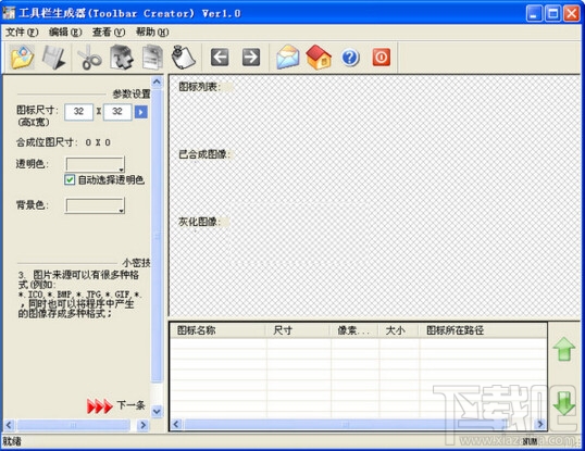 工具栏生成器(Toolbar Creator) 是专门为程序设计人员进行真彩色工具条设计的工具。 您或许有过这样的经历,为了设计一个漂亮的工具条,你要先找着或者自己做出每个小图标,最后为了把这些四处搜刮的小图片,凑成一副完整的工具条位图资源,您带上您的老花镜,小心谨慎地对齐一个个图片,累的是腰酸背痛腿抽筋,可是往往效果都不理想。最要命的是, 下次你想再中间插入一个按钮,上面的过程,您又得重新来过。有时候,您要花几个小时的时间,来生成真彩色工具条的位图资源!现在好了,工具栏生成器(Toolbar Creator)可以自动读入小位图文件(支持16×16,24×24,32×32,48×48以及任意自定义的尺寸),自动合并所有小的位图,然后输出您整合以后的位图资源文件。此外,工具栏生成器(Toolbar Creator)