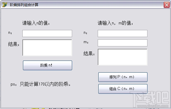 阶乘排列组合计算器可以计算170以内的阶乘、排列组合。
