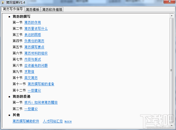 简历宝典是一款完全免费的简历软件,内置中文简历,英文简历模板,和简历写作指南。软件小巧,使用简单,撰写个人简历的必备宝典。