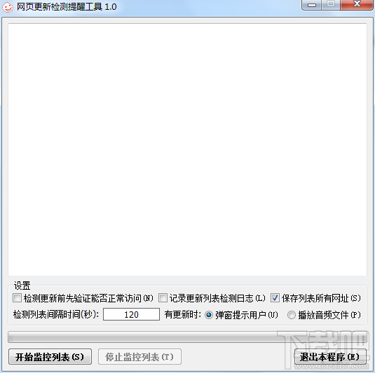 软件小巧绿色、不写注册表、不生成垃圾文件、无广告、无任何恶意行为。 本工具可检测指定网址的更新状态,使用列表检测方式,支持列表网址无限添加。 可在发现列表内的网站有更新时提示用户,播放音频。 支持后台检测,使用资源在同类软件中相对较小。 软件仅需在启动监视时获取一次信息,之后即可无限循环监视,即使列表网址有更新也可无缝重合,绝不进行重复提示!