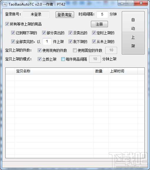 该软件可自动上架各种等待上架的宝贝,如已到期下架的、部分卖出的、没卖出的、定时上架的、全部卖完的等 淘宝自动上架 工具可以自动执行,可以定义自动执行的时间间隔;可以分类别的上架宝贝;可以设置多件商品间隔一定时间循序上架。它可以帮助卖家省去很多琐碎的事情,而留出更多的时间在营销上。