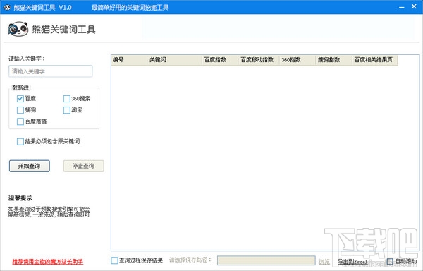 熊猫关键词工具是一款基于百度,搜狗,360搜索,淘宝的长尾关键词挖掘工具。软件小巧好用,挖掘速度快,是站长日常必备软件。