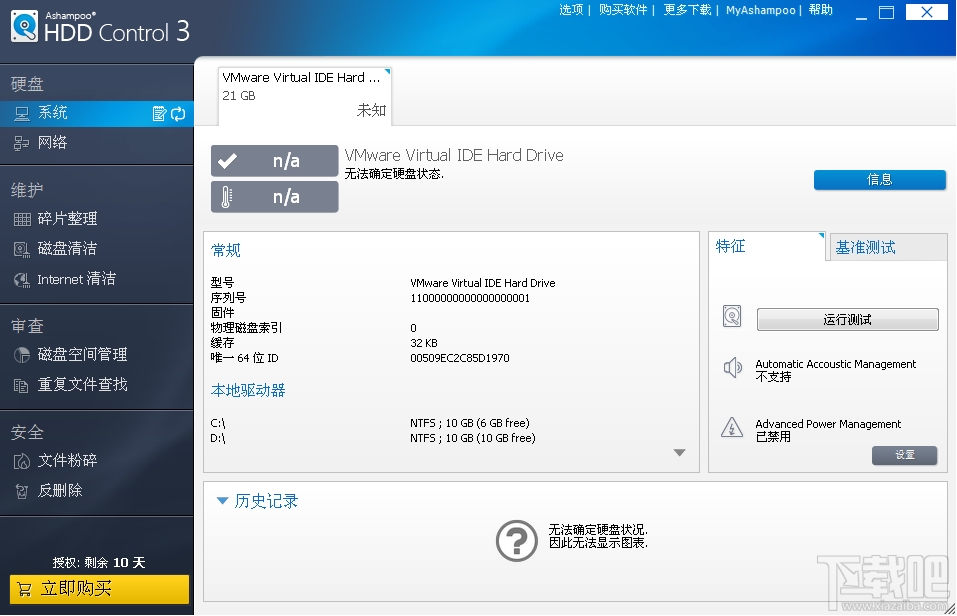 i、详细介绍; Ashampoo HDD Control 3 整理电脑磁盘。降低访问时间,去除资源占用大户,防止数据丢失,并及早检查硬盘问题。 在损坏前提前报警 Ashampoo HDD Control 3 会持续监视您的硬盘,判断硬盘的健康状况,如果出现异常情况防护程序会弹出通知,甚至可以发送 Email 报警。这样您就可以提交检测问题并及时备份重要数据,防止丢失。 缩短访问时间 您的硬盘在不停的读和写数据,最终这会产生文件碎片。将文件碎片重组合并需要占用时间并且可能会缩放硬盘的寿命。Ashampoo HDD Control 3 帮您整理这些硬盘碎片并提高读取速度和使用寿命。 对吃硬盘大户说再见 Ashampoo HDD Control 3,帮助您瞬间找出硬盘上的大文件。还能轻松找到和删除重复文件及冗余文件。 擦除敏感数据,还原误删除文件 内置文件粉碎工具和反删除工具,永久删除敏感数据或是恢复误删除的文件。 查找和删除冗余文件 重复文件查找帮助您快速方便的定位和删除重复文件。文件过滤机制让你可以轻松挑出特定文件,如 MP3 或图片,释放硬盘空间。 没有什么是永恒的,包括你的硬盘和数据。想让它们更安全,试试 Ashampoo HDD Control,神奇的硬盘健康监控工具。 HDD Control 3 企业版增强网络功能 在同一网络中有 3 台以上电脑?Ashampoo HDD 3 企业版帮您在家或是工作时监控任何数目的电脑。