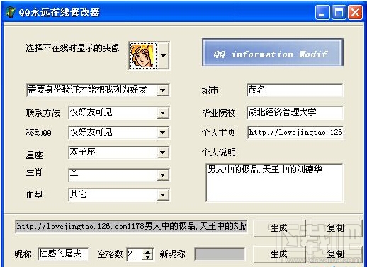 QQ永远在线修改器,让你的QQ看起来好像永远在线。 使用后,当你的QQ下线或隐身,而QQ头像在别人QQ好友里却是亮的、在线的;而当你的QQ在线时,QQ头像在别人QQ好友里是暗的、显示不在线的,正好和QQ设计相反