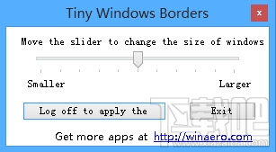 win8 调整窗口边框(Tiny Windows Borders)突破win8系统限制,修改边框 Tiny Windows Borders让我们这些不喜欢使用注册表的朋友来轻易的修改windows 8窗口边框的问题,在调整了宽度之后,需要注销现在的账户,然后重新登陆就可以了。