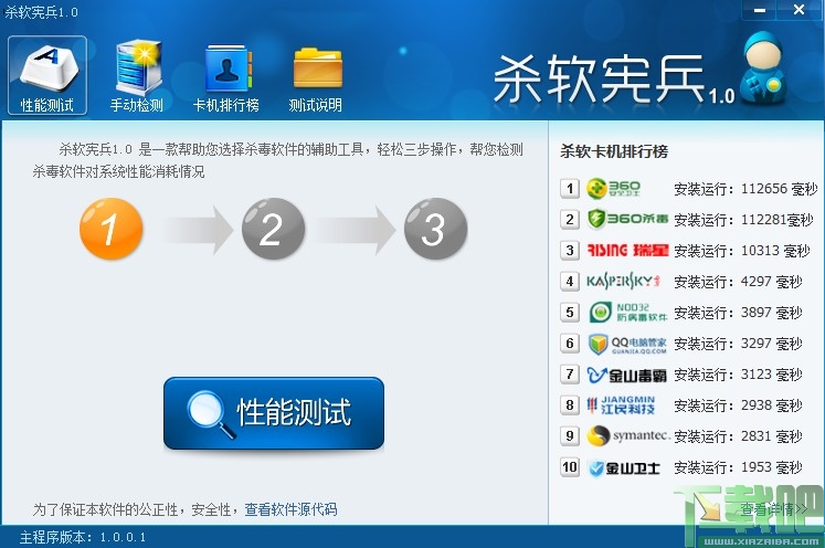 杀软宪兵是一款第三方杀毒软件评测工具,用于对杀毒软件拖慢电脑进行公开、中立的评测,力图以最简单的方式给大家在选择最适合自己的杀毒软件。目前有70%以上的用户都在抱怨自己的电脑慢、电脑卡,而这其中有很大一部分就是杀毒软件造成的,杀毒软件已经成为拖慢系统资源的罪魁祸首。