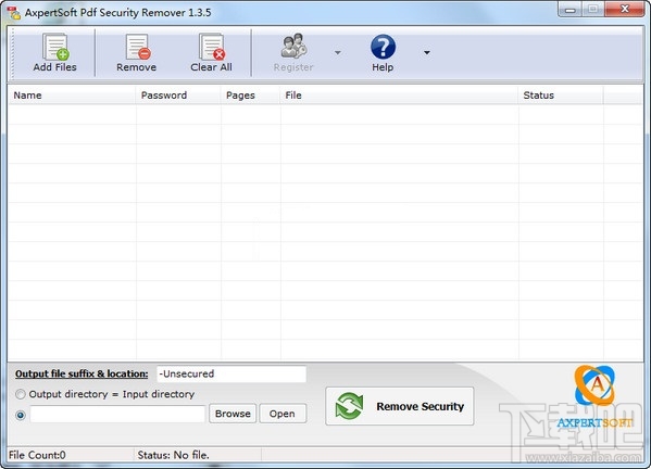 Pdf Security Remover是一款可以轻松帮助你去掉PDF文档的打开密码和权限密码的密码清除工具!就算是强大的诸如RC4 & AES 128/256-bit算法的密码也可以轻松清除!同时软件支持批量清除密码的功能!使用这个程序,可以瞬间让你的PDF文档可以自由的进行诸如打开、打印、修改、填表、签字、评论、页面提取和转换等操作!