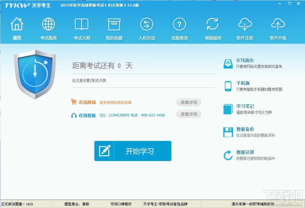 《医学高级职称考试题库(妇女保健)》根据2015年新卫生高级职称考试大纲编写,适用于妇女保健正高级、副高级考试。软件题库编写符合医学高级妇女保健学考试题型与考试科目,紧扣考试重点,考试资料丰富,免费试用、试题库巨大,并对部分难度较大考题提供专业级的解题思路、答题技巧、考试要点精解。考试软件模拟卫生高级职称真实人机对话考场环境,收录普通内科专业历年考试真题、精选试题、模拟考卷等辅导资料,提供单选题、多选题、共用题干单选题、案例分析题等全仿真试题练习,所有试题配有正确答案,对于其中典型试题、较难的试题还配有答题解析,帮助考生快速理解出题意向,通过人机对话的互动模式即可全面复习、又有针对性的强化弱项训练,提高应试能力和水平。 卫生高级职称考试题库天宇考王妇女保健学题库特色功能: 1、免费升级 软件根据每年新考试大纲提供及时更新升级服务,只要考生不更换电脑,可享受终身免费升级服务。 2、在线注册 方便、快捷的在线注册方式,提高注册速度,节约注册时间,让考生更专注于试题的复习。 3、人机对话 输入准考证号后进入全真模拟机考系统,仿真考试界面,各种题型的题量无限次自动组卷,测试结交后系统给出总分和答题正确率。身临其境提前感受真实考场氛围,做到平时练习到位,考试临场不乱。 4、智能阅卷 答题完毕后,软件自动批阅并显示得分,并显示答题的正确率,使考生对自己的水平有正确的认识和估量,并针对薄弱项加强联系。 5、试题查找 以某个关键词或某个知识点为索引进行查找,将包含此知识点的所有试题汇总显示,并标明题型与来源,针对性强,更科学的为考生节约时间。 6、错题重做 软件记录下每次答题情况,可以将错题重新调出重做,反复刺激,加深印。 7、我的收藏 根据难度不同,将重点试题、基础薄弱的试题放进试题收藏,便于强化知识点练习,重点记忆。 8、数据备份 安全、快捷的保存答题记录、已收藏试题等用户个性信息。 9、数据恢复 系统重装后,可以轻松从已经备份文件中恢复答题记录、已收藏试题。 10、个性设置 字号自由放大缩小,阅读更轻松;可以针对每种题型设置分值。 11、分类练习 按考试的科目进行分类练习,有章节练习、强化练习、模拟试卷等,针对性强,覆盖了应考的全部知识点,可根据需要显示答案或隐藏答案,重点试题提供专业级的解题思路,做题思路更顺畅。