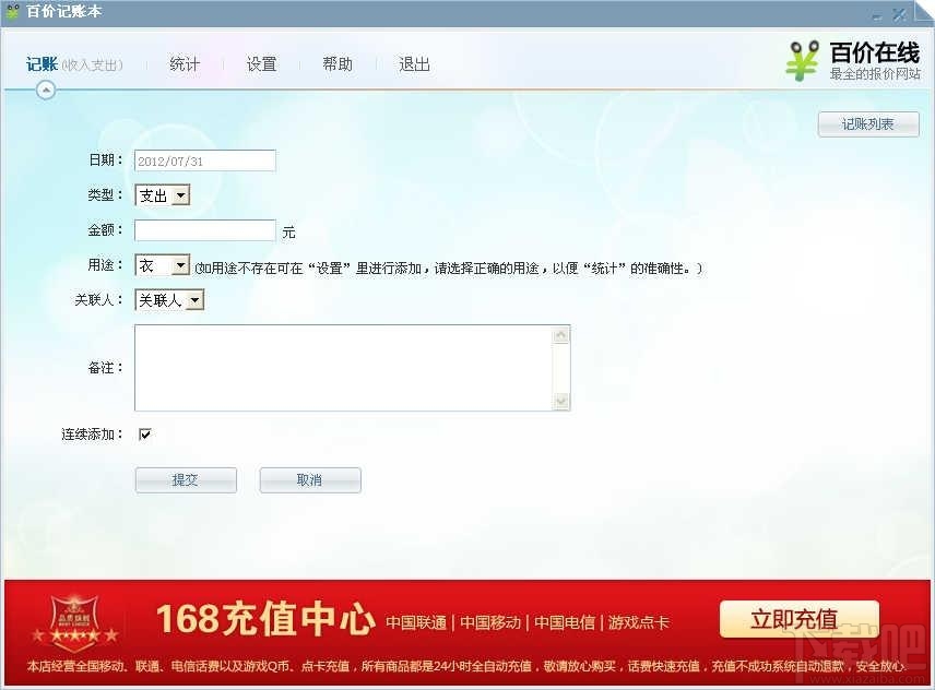 百价记账本是一款适合家庭、小企业、淘宝店铺、实体商铺等用户的免费记账软件。本软件可在线下载exe可执行文件直接安装到本地磁盘,记账数据存储到用户的电脑里,极大的保护了用户数据不会外泄、安全可靠。