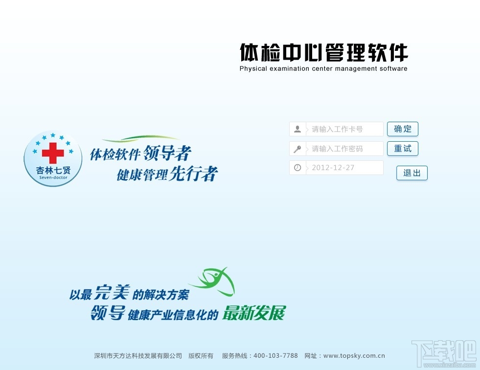 杏林七贤健康体检软件是由一系列产品组成,即相互独立又紧密相连,可自由组合。杏林七贤体检系统以健康保健为目的,以健康档案为主线,围绕着健康档案的产生、发布、存储、使用,将体检中心、健康管理中心、体检者个人、体检者所在单位四个主题紧密联系在一起,完成健康体检和健康管理业务电脑信息化管理,形成了一个健康档案共享、功能前后连接的完整平台
