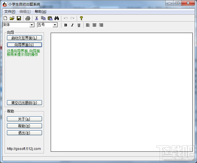 这是一个帮助家长在小学生学习四则运算时的自动出题系统,具有很高的智能性.相比各位都有过在子女上学中给子女出简单的数学题的过程,成年人都有一种思维定势,出出来的题千篇一律,其实这主要是因为是十以内加法题只有81中可能,而在81中可能中出题,难免千篇一律。本软件就是用来解决这个问题的,有计算机自己随机出题,并生成一份试卷。 开发商:通用标准软件工作室