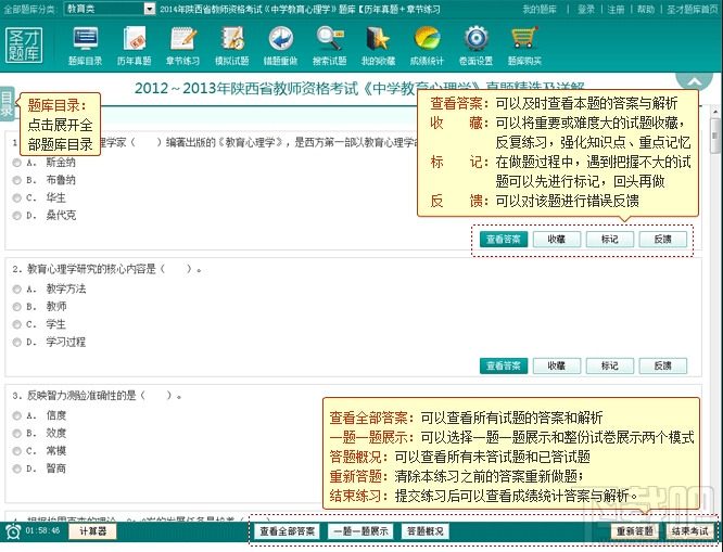 不同一般意义的传统题库,本题库是详解陕西省教师资格考试“教育心理学”科目的题库,包括章节练习和模拟试题及详解两大部分。