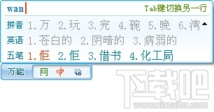 输入字词后双行显示中文和英文两种结果,例如输入china后,第一行显示“吃那” 等选项,第二行显示“中国”等选项,Tab键即可轻松切换选择所需结果。