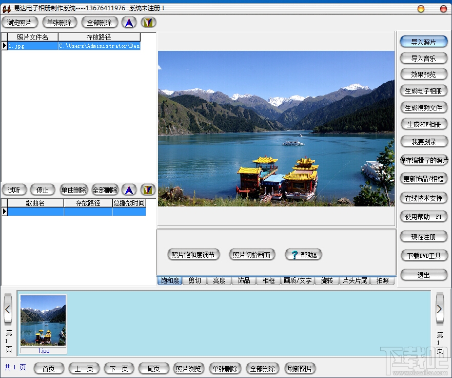 易达电子相册制作系统可以方便的将您的照片制作成电子相册,并可对电子相册设置密码,方便您收藏、管理大量相片。可以利用它轻松制作生成可独立运行的EXE格式相册程序,也可以生成可独立运行的屏幕保护程序,生成的EXE及屏保中可以包含多个背景音乐,并支持200多种相片切换效果。系统还自带拍照和刻录功能,新增视频文件生成功能,生成的视频文件转化后,可以放到VCD或DVD机、手机、掌上电脑,MP4等设备上直接进行播放。